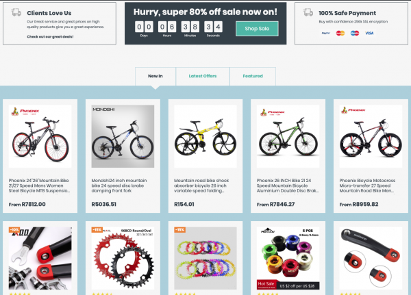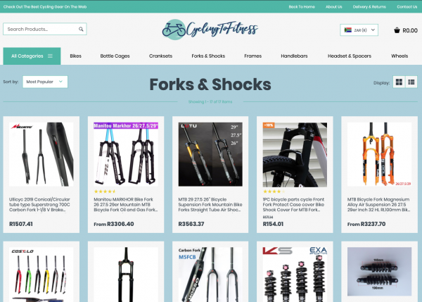 A fantastic Cycling and Fitness Store with great product categories including Carbon Bikes, Frames, Handlbars , Seats and much more selling high quality products and accessories in the ever-growing Cycling & Fitness niche through your dropshipping store, with all the products hand chosen to complement each other without them being overly available in the local market to ensure you keep your edge of uniqueness, with worldwide delivery.