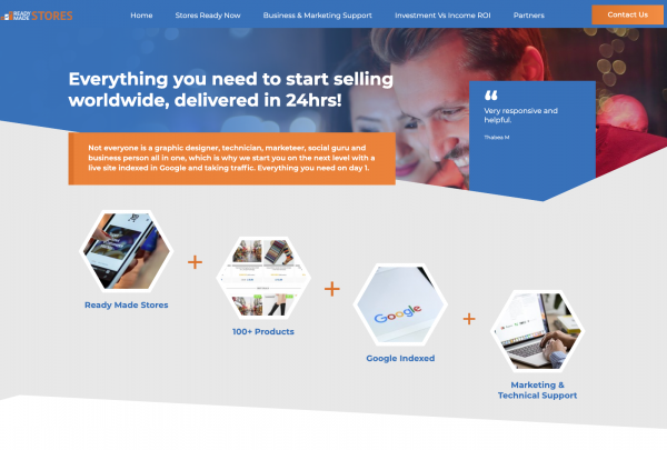 As part of the RMS Partner package you can choose one of any of our Ready Made Stores , giving you another income stream as well as first hand experience of the Stores that you are selling though your RMS Partner Store. You retain 100% of the profit from a sale through your Ready Made Store, no commission or profit splits.