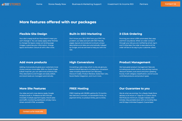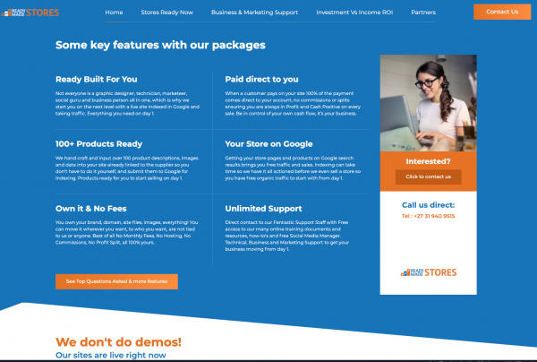 This is where you will be selling our Ready Made Stores and Support Packages as you will see them on our site , for all sales through this site you are paid 35% commission.